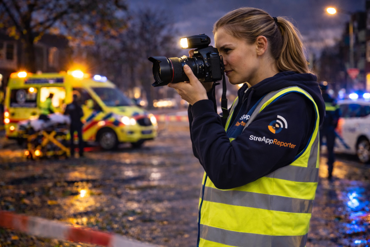 Dit zichtbaarheidsvest is speciaal ontworpen voor leden van de Streapp-community die regelmatig aanwezig zijn bij incidenten of meldingen. Het vest helpt om duidelijk zichtbaar te zijn als fotograaf of spotter, zodat je niet wordt aangezien voor een ramptoerist.